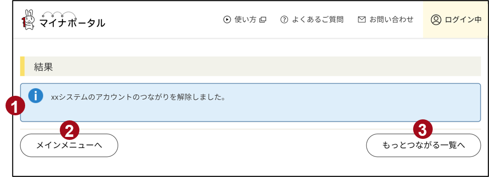 結果では、ウェブサイトとのつながりの解除が完了したことを確認します。